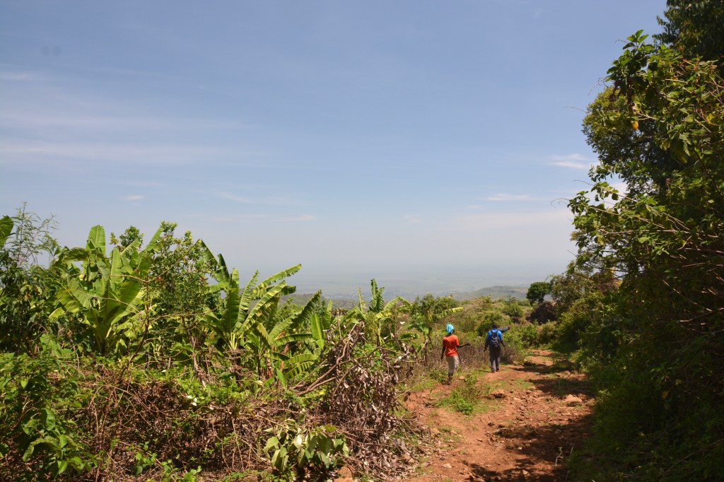 The first hill is so steep it’s been roughly tarred. A motorbike taxi struggles with two passengers. It stops and the woman on the back, with baby tied behind, gets down to lighten the load. A middle-aged man stays aboard…