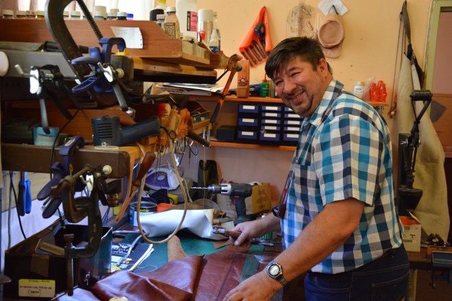 It’s been a warm reunion. I am so fortunate to be accepted all around my travelling world by so many very diverse friends and acquaintances. So lucky. Steven and Isabel have been together four or five years now. She’s a good businesswoman with her own leather supplies business – a long-established business she bought some years ago as an opportunity. Steven, run ragged by his employment for a huge mobile phone company, for whom he fitted the equipment on relay towers, at last resigned and works now with Isabel. He’s always loved leatherwork; I remember him repairing things for me in the past – pannier bags, belts, camera bags – and now, for half the money he made as a telecommunications engineer, but double the personal satisfaction, he loves his work, creating and repairing leather goods.
