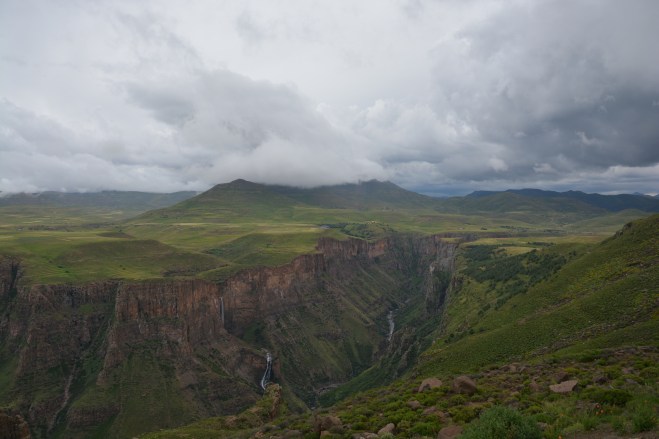 Then I saw that a huge storm was building in that direction, and thought to myself, ‘honestly, where can you reasonably put ANOTHER Basotho mat in tiny Rock Cottage?’ and turned left instead to drive right over the centre of Lesotho via Semonkong to the south east corner of the country. Sadly, the storm soon overwhelmed most of Lesotho and I was eventually driving in thick cloud and pouring rain.