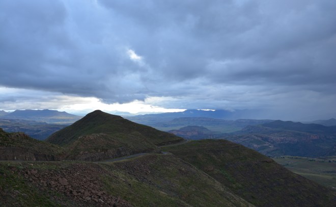 For once, The Box felt quite welcome. I was high in the mountains in torrential rain, thick in the grey chilly clouds. The temperature dropped to 9 degrees at one point, reminding me that for all its sunny splendour Lesotho is a harsh place, one of the few places in Africa that experiences heavy snow in July. The amazing landscape is still impressive, even in scudding cloud and lashing rain. The play of light amongst the varied densities of a million swirling and dashing clouds; the shafts of light that penetrate and spotlight patches of intense green; the wind that turns grasslands into oceans of rippling waves; the flash of puddles and the fast flowing brown of rivers – it’s a visual feast, even in rain. This evening I have taken some of my best landscape photographs.