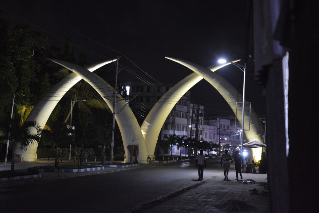 I find my way to the centre of the city, to it’s best known landmark, two pairs of sheet steel tusks that arch over one of the main avenues beside the small Uhuru (‘freedom’) gardens. The tusks were put here for the Queen’s state visit back in the early 1950s, that time she acceded to the throne while she was in Kenya. None of us had TVs for the subsequent Coronation, and I had quarantined chicken pox and a picnic the day she became Queen.