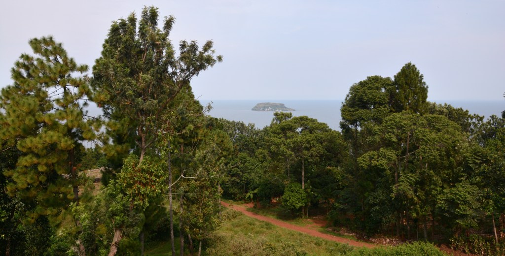 Bukoba, my destination, is about 50 miles from the border. I couldn’t see much of that journey, the window beside me blanked out by bright orange foil. I could see only through a tiny slit as the landscape whipped past. It appeared to be quite handsome savannah and forests of pines. We entered (very slowly with that load) some rolling hills and eventually descended towards Lake Victoria. Bukoba sprawls along a shallow bay, a small steep rocky island offshore with a rather romantic looking village on its west side. I expect it looks better from the mainland: it’s probably as disappointingly scruffy as the other villages around. My first impression is that this is a very undeveloped part of the world, a backwater even of Tanzania. Very few speak even a few words of English, which suggests education levels are low, and people are reserved, even with a mzungu passing by, but quietly welcoming.