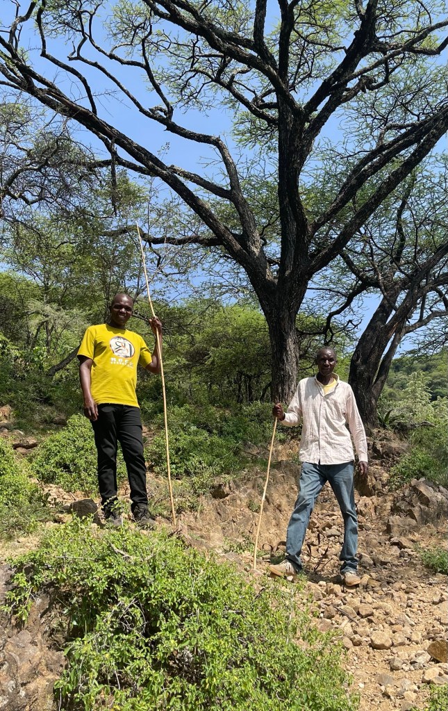 Later, we climbed up to the Kessup Forest on the escarpment top, above the soaring red cliffs, so we could say that in under 24 hours we hiked from the bottom of the Rift Valley to the top – from 3904 feet to 7481 feet (1190m to 2280m). A total climb of 3577 feet or 1090m.