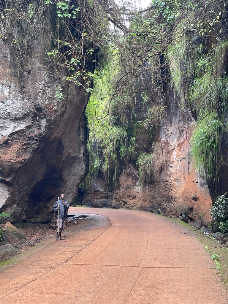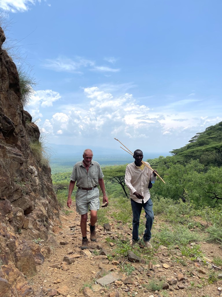 The track we use to climb out of the tremendous valley was planned as a road, but abandoned through inefficient surveying of the friable rock and steep faces. It’s a rough rocky incline winding upwards until it reaches steep faces that proved unviable. A year or two ago, you could’ve ridden a boda up much of it. Now, most of it is being fast reclaimed by rampant African nature.
