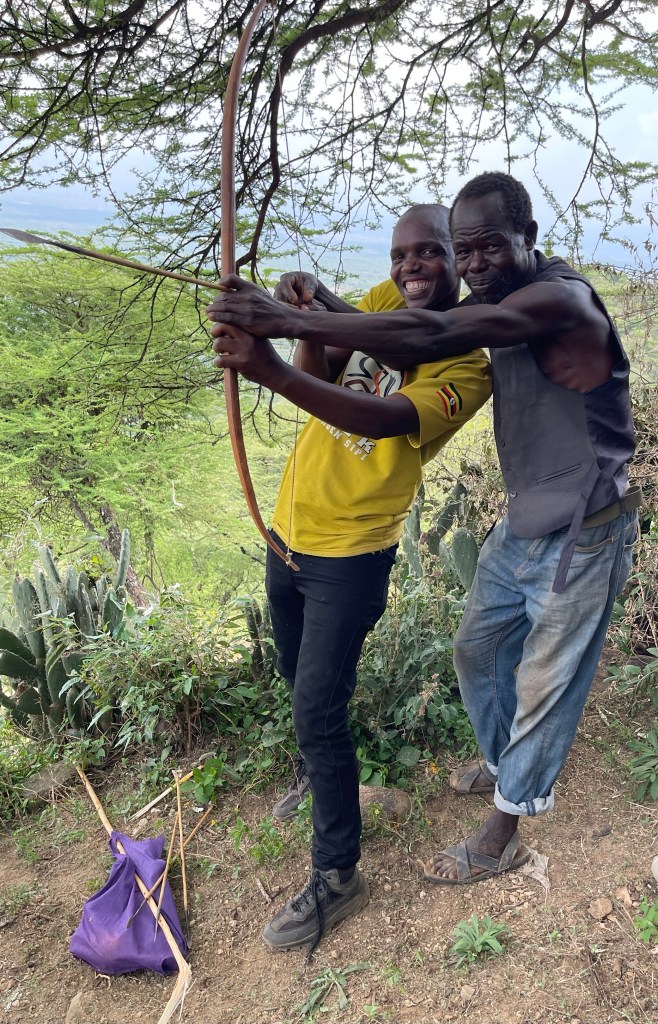 Others have joined us, as we eat the chapatis, speared on cheap forks that are probably only superficially clean, watching the cook in her six foot circular diminutive mud and thatch hut, who washes up in a splash from a jerrycan. Another old man joins the group, competing in the age stakes, but the first octogenarian assures him that he is at least two years younger than he is! Many tell me that they are 100 years old – most not able to give an accurate date for their birth. They tell me I’m, “just a boy!” amid laughter. It’s always such an engaging time, to sit in these remote villages that see so little excitement that a passing muzungu becomes the attraction of the week. I love the celebrity progress we make, so does Alex.